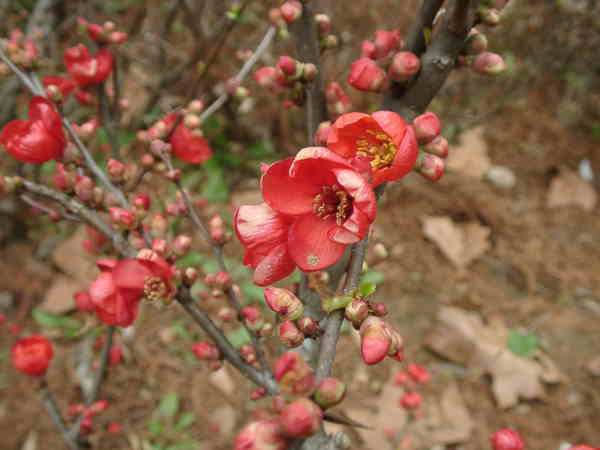 木瓜(ぼけ) 名前で損している花だと思います。 バラ科のトゲがある花。 この花をみても春の訪れを感じます。