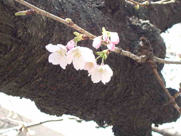早咲きの桜 近くの高校で1本だけ咲いています。 (01.3.14撮影)