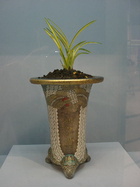 ガラスケースの中で堂々と存在していた鉢のそばにさりげなく値段が・・・。パフィオは200万円! おお,と思ったらもっと上がありました。富貴蘭は1,400万円。春蘭は1,000万円でした。まさに桁が違います。