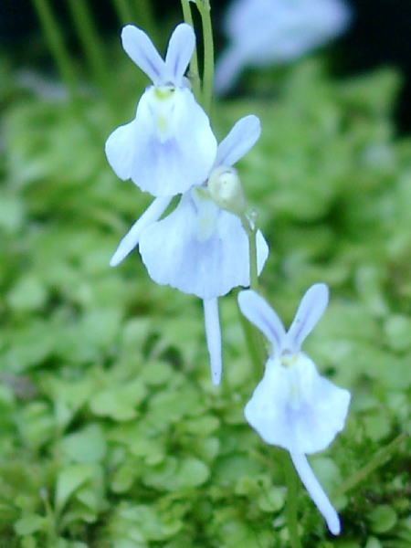 ウサギゴケことミミカキグサのサンダソニィ,まだ盛んにウサギのような花を咲かせています。いつ見ても愛らしく,にっこりしてしまいます。